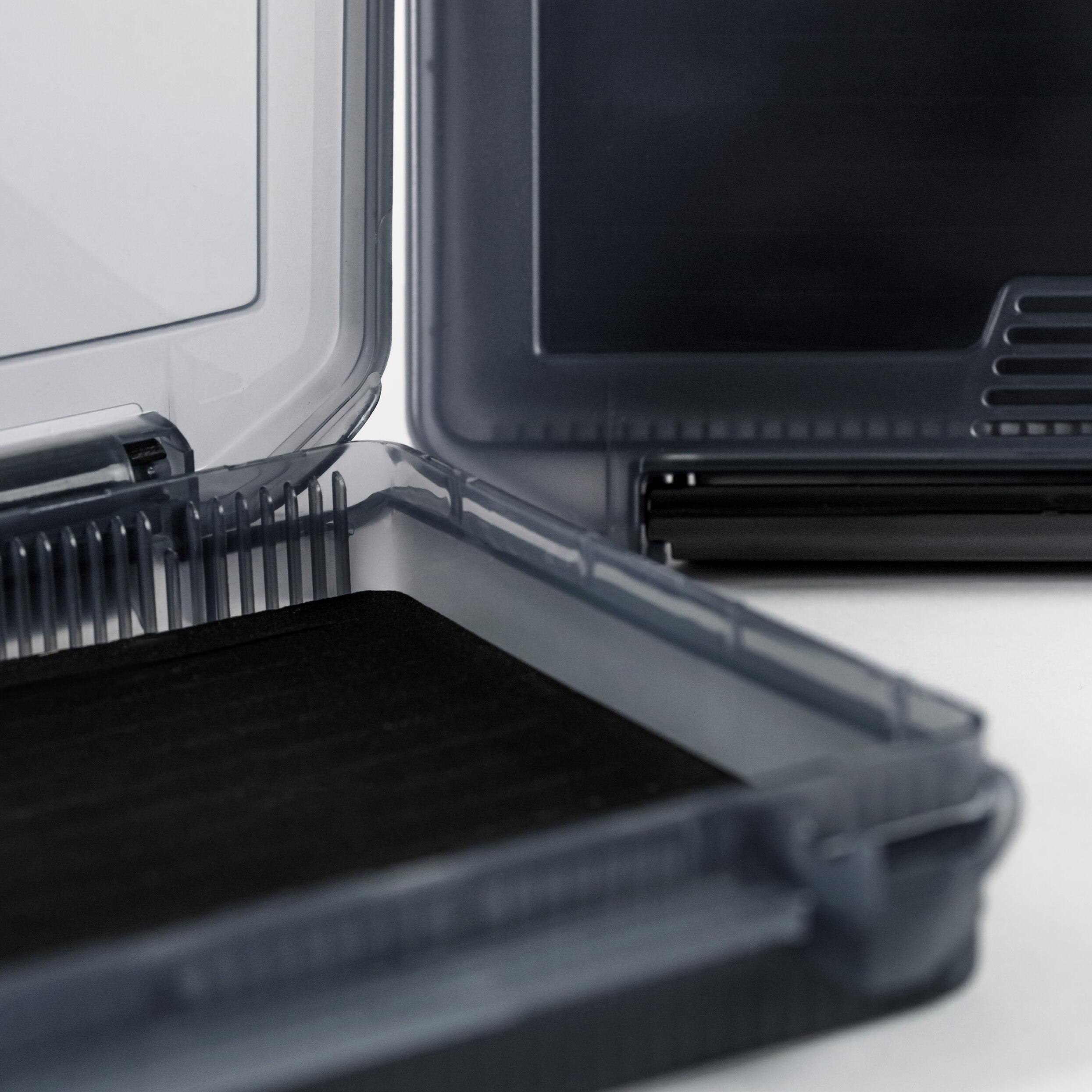 De två Stingerboxarna är gjorda i transparant gunsmokefärgad plast och har färdigskurna skårer i den svarta foamen. Locket är helt avtagbart. Boxar perfekta för att organisera dina tackel och stingers.
