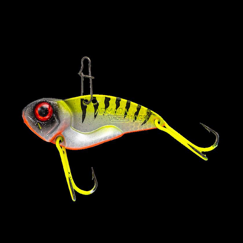 Armada Vibrator är ett vibrationsbete för abborre och gös. Genom sin ettriga vibrerande gång hörs den lång väg för fisken. Du kan relgera djupgåendet och vinkeln genom att flytta haken på ryggen. Vi har monterat uppåtvända dubbelkrokar på Vibrator vilket gör att du kan fiska den nära botten utan att fatsna eller skada krokarna. Blue Silver