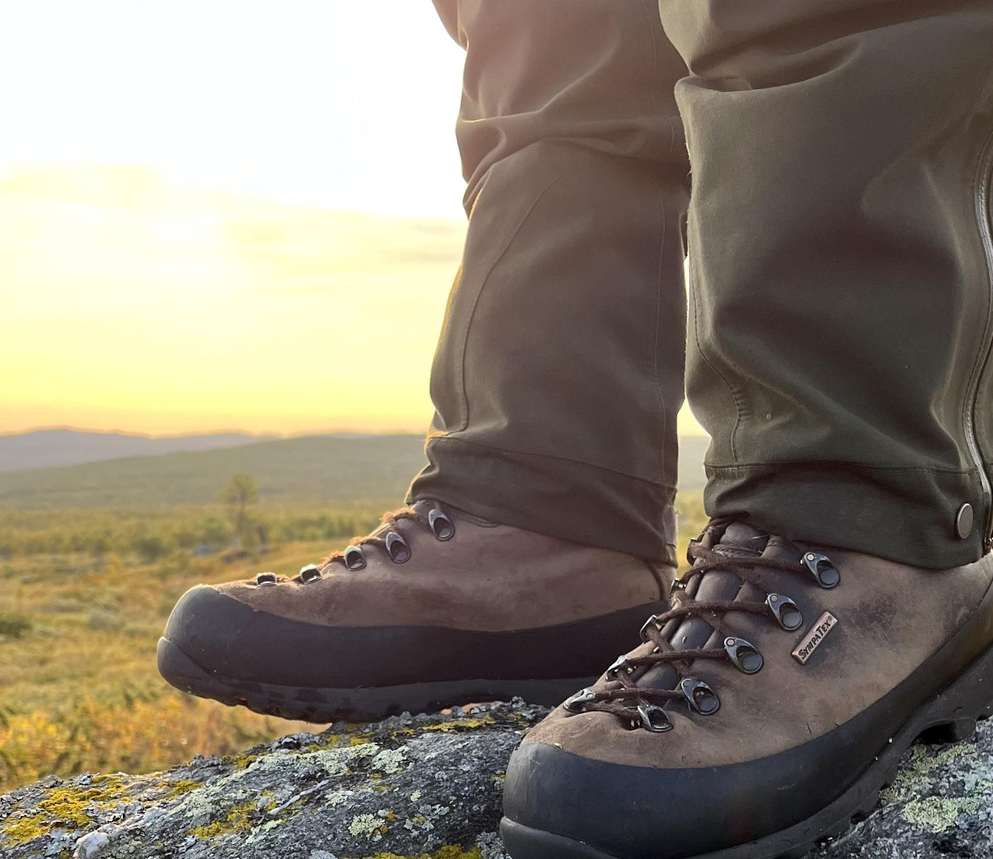 Ultralätt känga för jakt och vandring. Överdel av nubuckläder. Gore-Tex-membran håller fötterna torra.