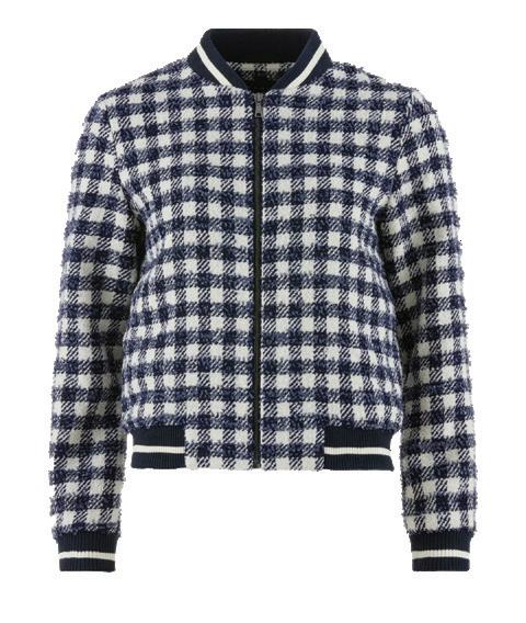 Featured on model, centre: Red Pearl Mos Mosh Jacket $469. Pictured clockwise from top left: St Ives Professional Skincare Clarins Nutri-Lumiere Collection $179. Sportscraft Nola check quilted jacket $269.99. Lari slim jean $139.99. Tatiana mohair scarf $129.99. Leisures Shoe Boutique Sandie loafer $289.95. Priceline The Ordinary The Bright Set 4 piece $62. Book Review Vivienne Westwood Catwalk $120. Country Road Double pouch crossbody bag $149. Cable Melbourne Frankie check pant $249. Elan Jewellers 18ct yellow gold diamond band claw set ring $2250. Red Pearl Mos Mosh Alyn high neck knit, $305. Pants $229. Priceline Burberry Brit For Her EDT 100ml $173. Cable Melbourne Wool scarf, camel check $99. Witchery Cotton stripe cropped shirt $129.95. Leisures Shoe Boutique Karter off-white boot $289.95. Decjuba Mara longline check blazer $179.95. OPSM Michael Kors MK1121 chianti sunglasses $233.