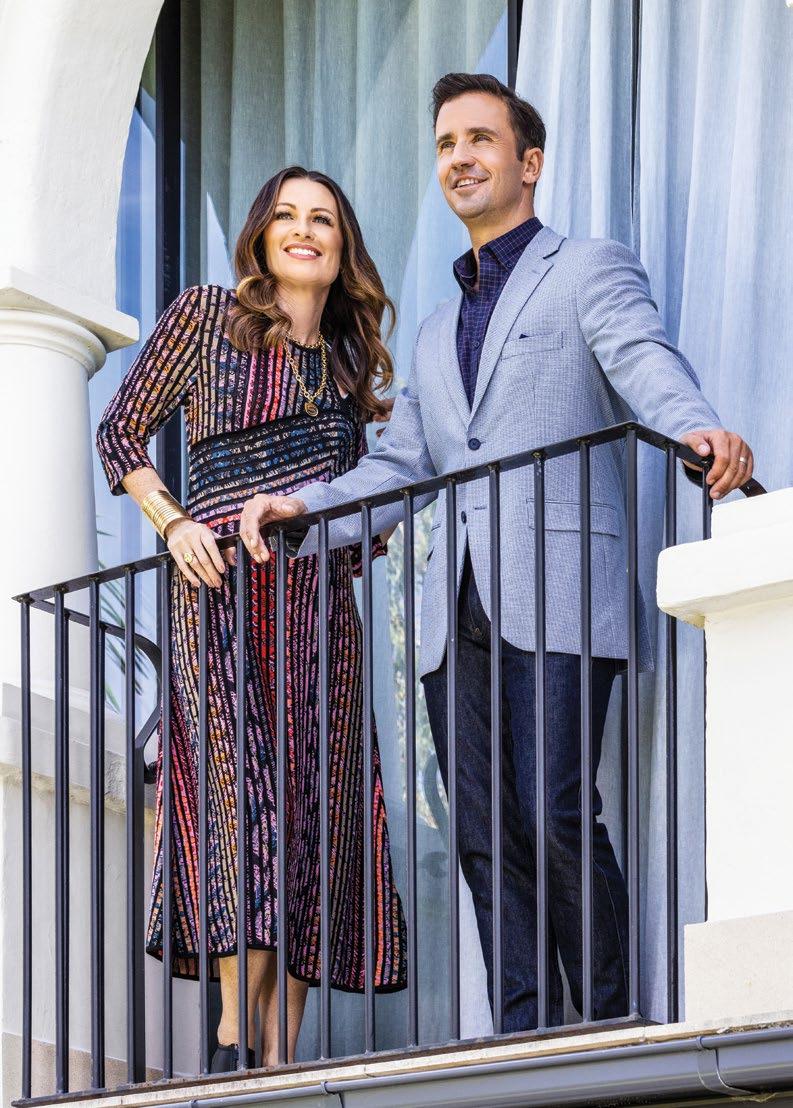Pictured right Andrew wears: Sportscraft Emerson long sleeve shirt $129.99. Bedford jeans $179.99. Gazman Leather belt $59.95. Ecco Hybrid chukka boots $389.95. St Ives Jewellers Ring $560. Priscilla wears: Cable Talisa jumper $299, Talisa wrap skirt $299. Carolina Raven suede boots $299.99. RG Collection Cuff $295.