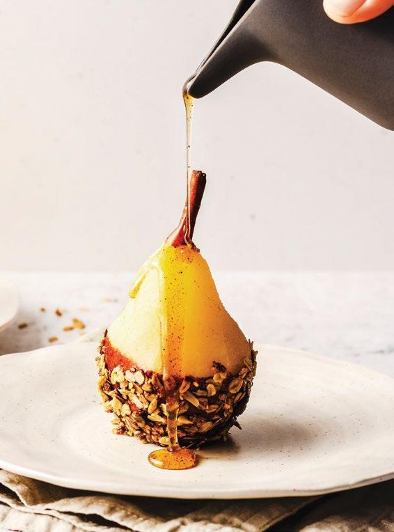 For those with a sweet tooth, we have just the thing to keep you toasty warm, while soothing those sweet cravings. These warm poached pairs with added crunch are the perfect winter warmer. Visit stivesvillage.com.au for the full recipe.