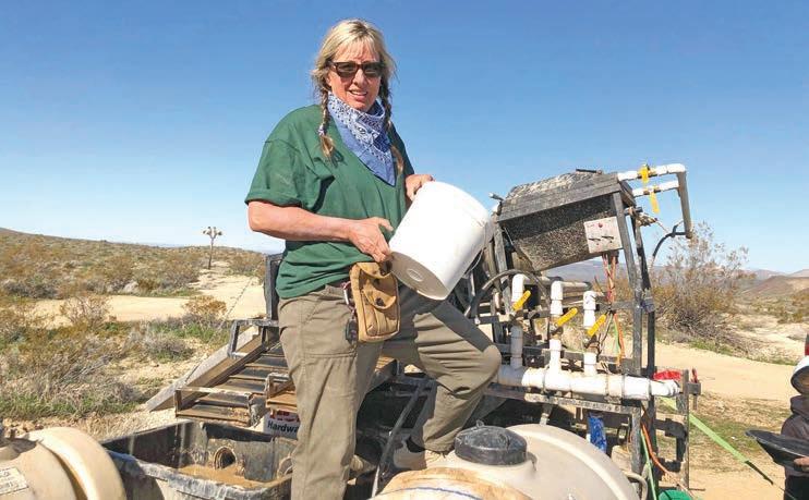Laura Zayats, president of the Temecula Valley Prospectors, illustrates how to pan for gold. Valley News/Courtesy photos