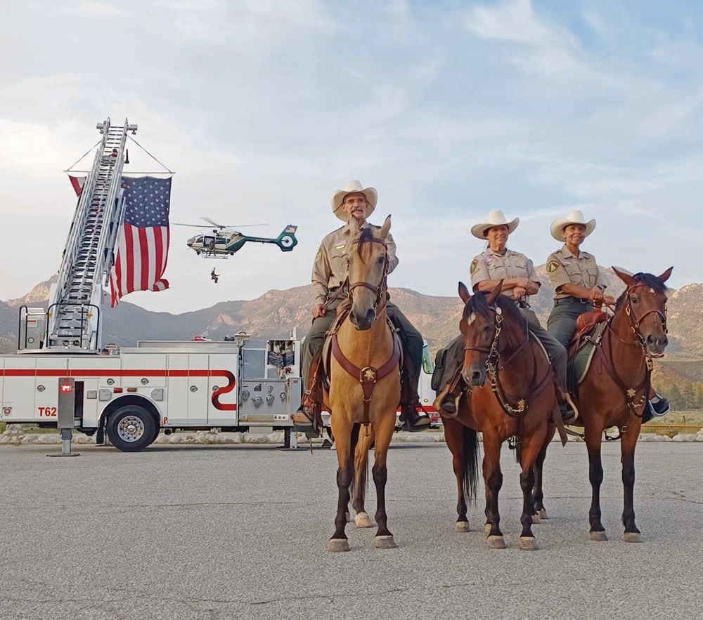 [Left] Annika Knöppel, left, Robyn Garrison and Annie Ashby represent the Anza Citizens Patrol at the National Night Out event at Lake Hemet/Mountain Sheriff’s Substation Tuesday, August 6. Anza Valley Outlook/Diane Sieker photo