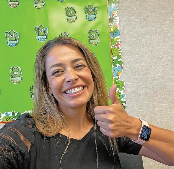Second grade teacher Monica Parsons is ready for her students with a thumb up.Home-schooled Austin Butchart starts eleventh grade on opening day.