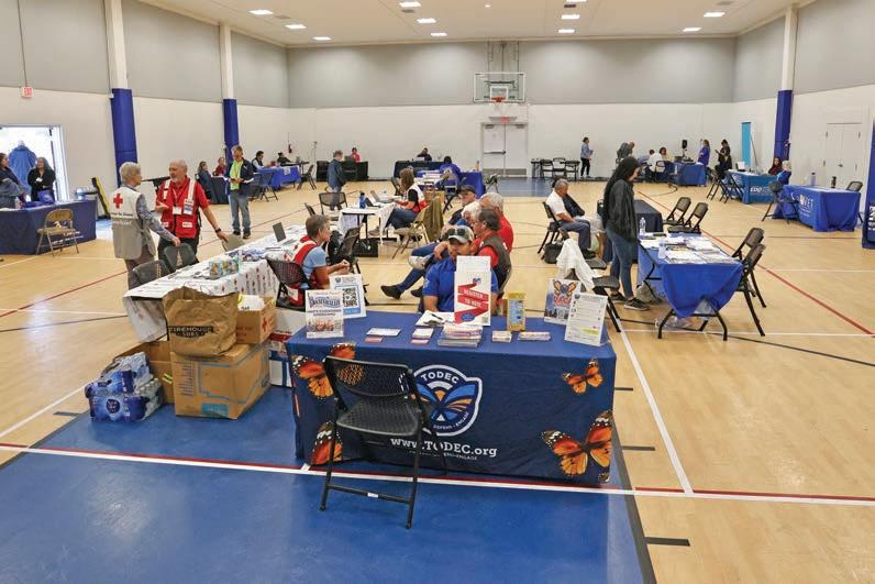 help ranging from replacing lost car and truck titles to helping file insurance claims. A large contingent of Riverside County Department of Social Services (DPSS) representatives was available to offer help to the Airport Fire victims and their children.