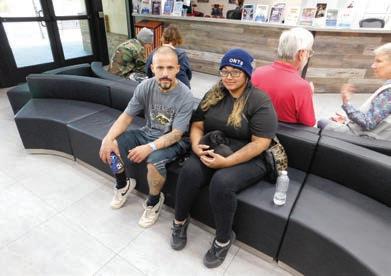 Samuel Santos and his wife Caroline, holding a puppy and victims of the Airport Fire, patiently await their turn to find out what help they might receive at the Lakeland Village Community Center’s Riverside County Emergency Management event, Sept. 19-21. Valley News/Tony Ault photo