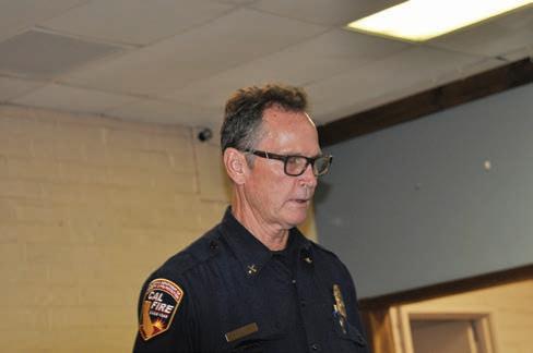 CalFire Chief Kevin McNally talks about fire breaks, safety and the Fairview Fire at the AVMAC meeting Wednesday, Sept. 21.