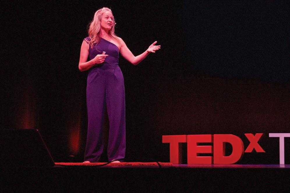 Jennifer Cassetta, a success coach, self-defense expert and author, engages with the audience at the 2022 TEDxTemecula at the Old Town Temecula Community Theater, Saturday, Sept. 24. See story and more photos on page B-1.