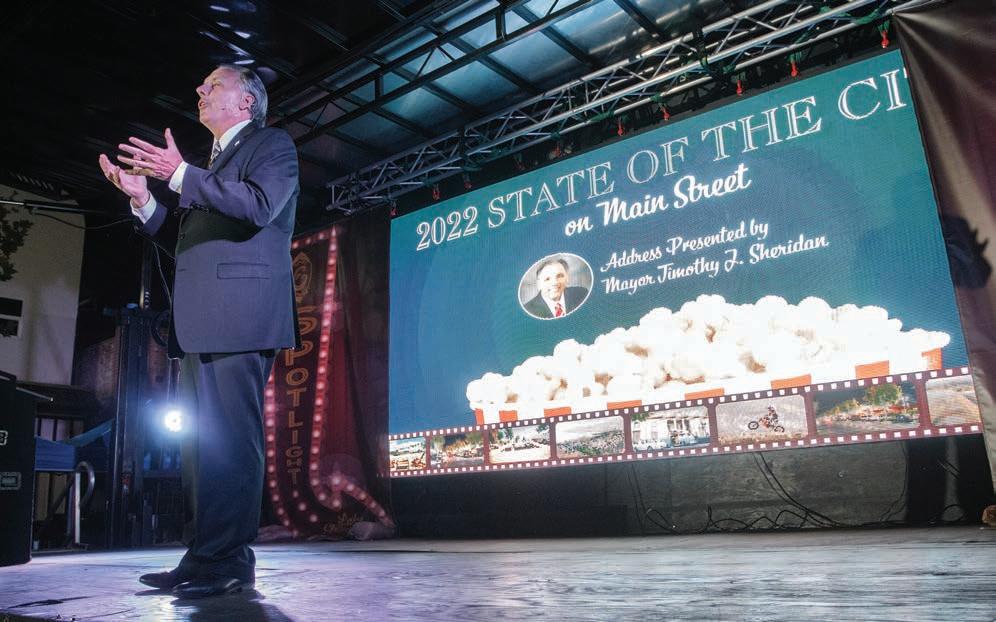It was lights, cameras and plenty of action as Lake Elsinore Mayor Timothy J. Sheridan delivered an upbeat message about the State of the City on Oct. 20. This year’s theme is Spotlight Lake Elsinore and Sheridan said it specifically means they have focused a spotlight on what makes the commu-