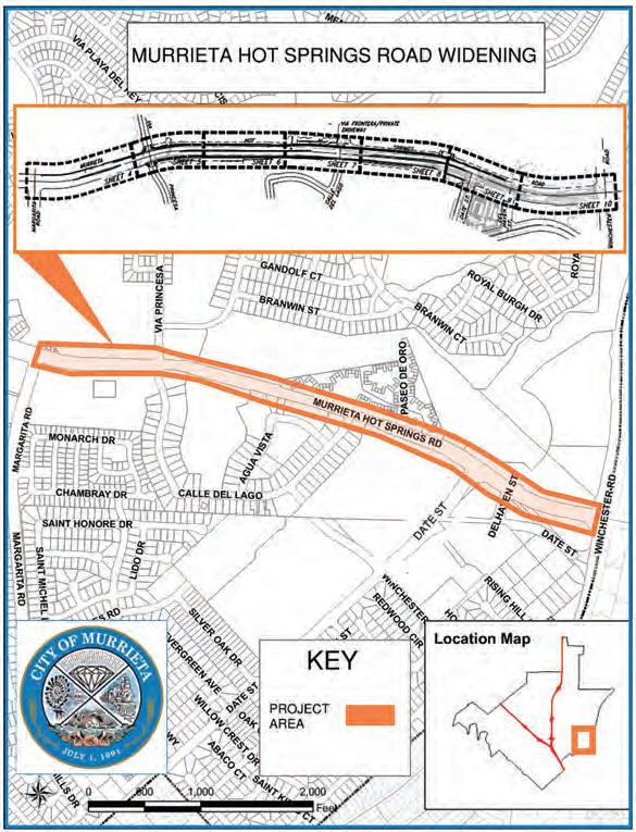 The expansive scope of the project includes upgrading Murrieta Hot Springs Road to a six-lane arterial by adding one lane in each direction between Via Princesa East and Delhaven Street, coupled with vital roadway reconstruction, new sidewalks, and bike lanes. Commuters can also expect upgraded lighting, a new traffic signal at Calle Del Lago, modifications to the signal at Via Princesa East, improved water quality and drainage, landscaped medians and parkways, retaining and planter walls, as well as ADAcompliant curb ramps.