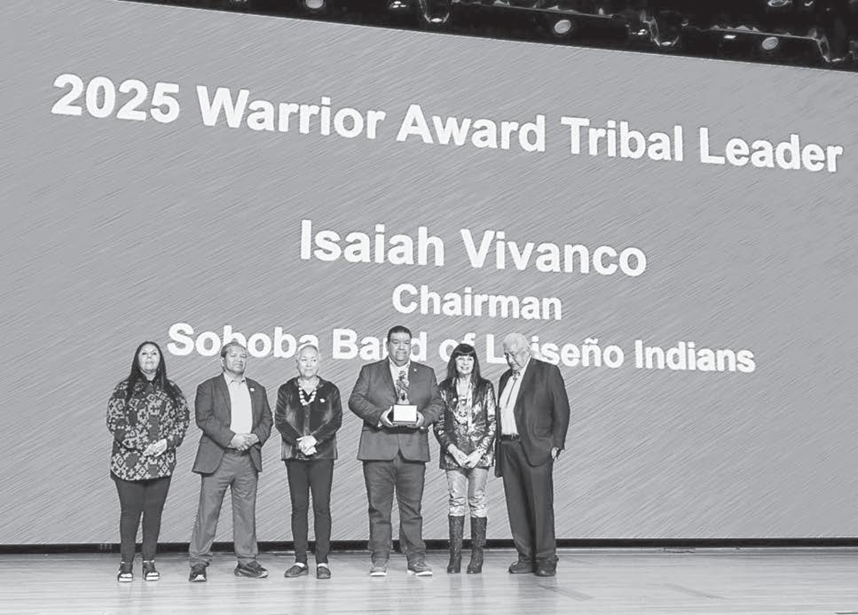 The American Indian Chamber of Commerce of California awarded Soboba Tribal Council Chairman Isaiah Vivanco with the Warrior Award. This is one of the highest honors presented by the AICCCA. It recognizes individuals whose leadership, perseverance, and service have significantly strengthened Native American communities and advanced economic opportunity for Native-owned businesses throughout California.