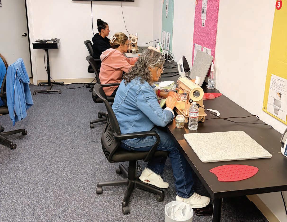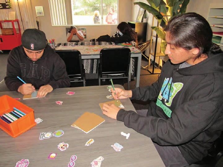 Jerimyah Saenz, left, and Jeffrey Arres work on personalizing their pocket journals at the Wellness Center on campus.