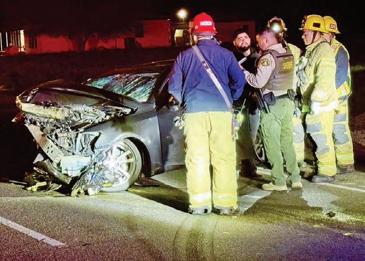 a local medical facility for treatment. The extent of the person’s injuries was not immediately known. Authorities said the driver believed to be responsible for the crash was traveling about 105 mph before the collision and was arrested on suspicion of DUI.