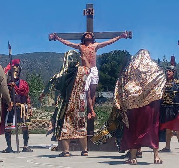 Kindergarten students with the Easter bunny after completing a hunt for hundreds of Easter eggs hidden on their playground. Valley News/Soboba Band of Luiseño Indians photos