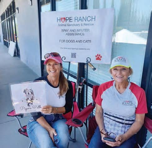 Denice Hickethier with Piper’s Path Rescue, left, assists Gunilla Pratt with Hope Ranch Rescue handouts at the meet and greet event at Helping Paws Animal Hospital in Anza.