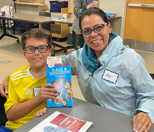 2 Atwater fifth-grader Gabriel Barrios Moreno and his mom, Alex Moreno, hold up a new American Girl series book on race and inclusion authored by Milwaukee’s Deanna Singh. Singh was sponsored by the Shorewood Foun dation to lead a youth workshop Oct. 11 at the Shorewood Public Library, featuring activities from the book.