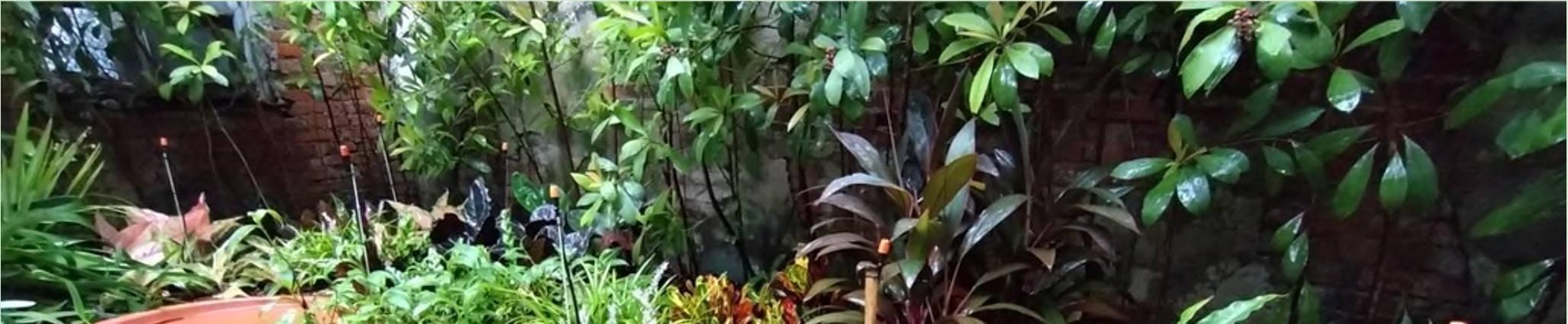 含左後死角新設植床導入自然式植栽設計並以竹編美化。植栽設計為立體化,故垂直面可能包含附生植物,並包括 中⼤型⽔⽣植物盆⼀個。⽔⽣植物盆將使⽤回收雨⽔為來源,並會飼養防蚊⿂類。為順應基地環境特⾊,則植栽受 限為陰性植物 。