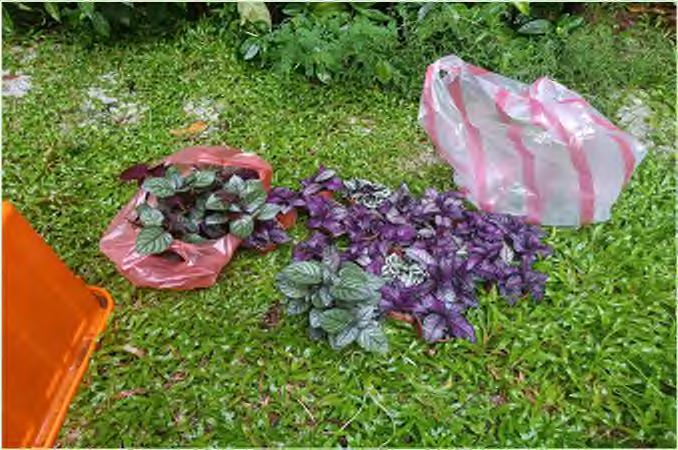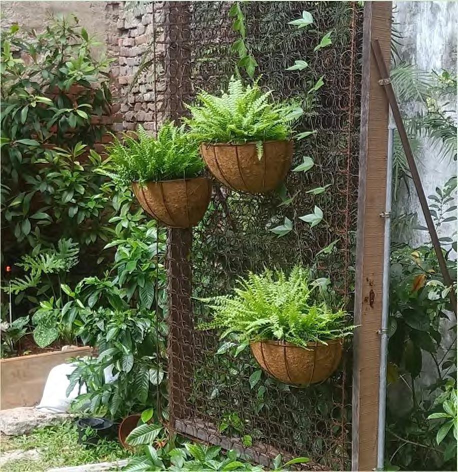 使用廢棄之花架及椰纖殼種植蕨類及耐陰性植 物
