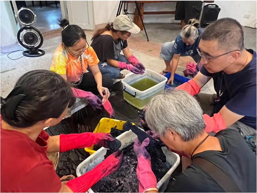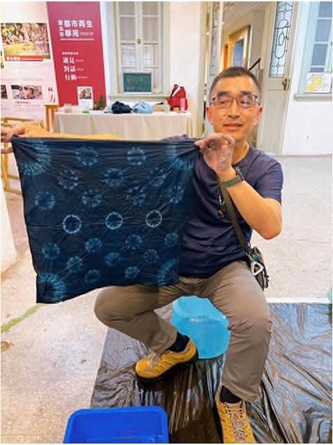 植物染共作坊:以藍染布料與回收紙再利用為主,藍染搭配大菁解說, 回收紙可以搭配書法創作。