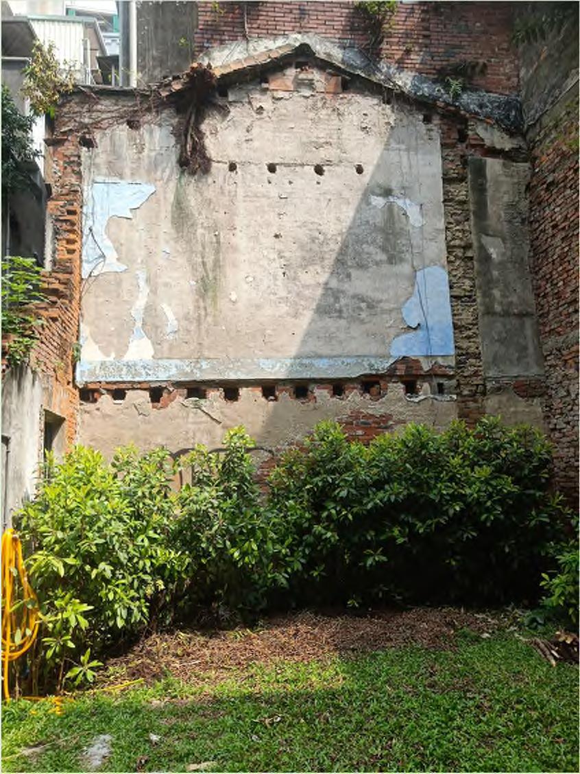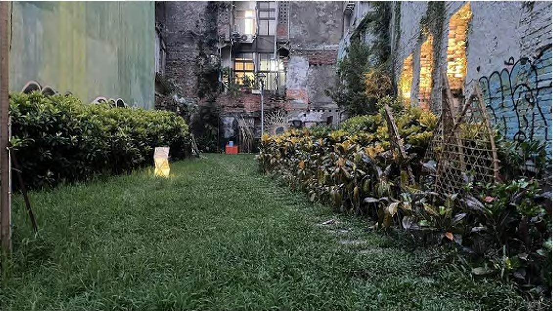 可以附掛與古牆保持距離的植栽槽(形式未定),以倚靠或獨立的模式栽種耐陰植 物如蕨類。設置太陽能控制之定時滴、噴灌系統以確保存活率並降低維管需求。掛 網、植栽槽以及成⻑的植物等空間配置,較不利於塗鴉者之展示意味。
