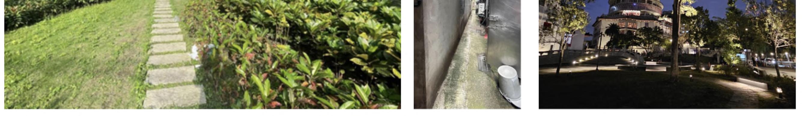 燈移動到紅磚牆或至善堂之圍牆,最好改成 感應式,讓光可以照到想要照亮的區域,非 無意義⼜耗能的⻑時間投射在牆壁上。