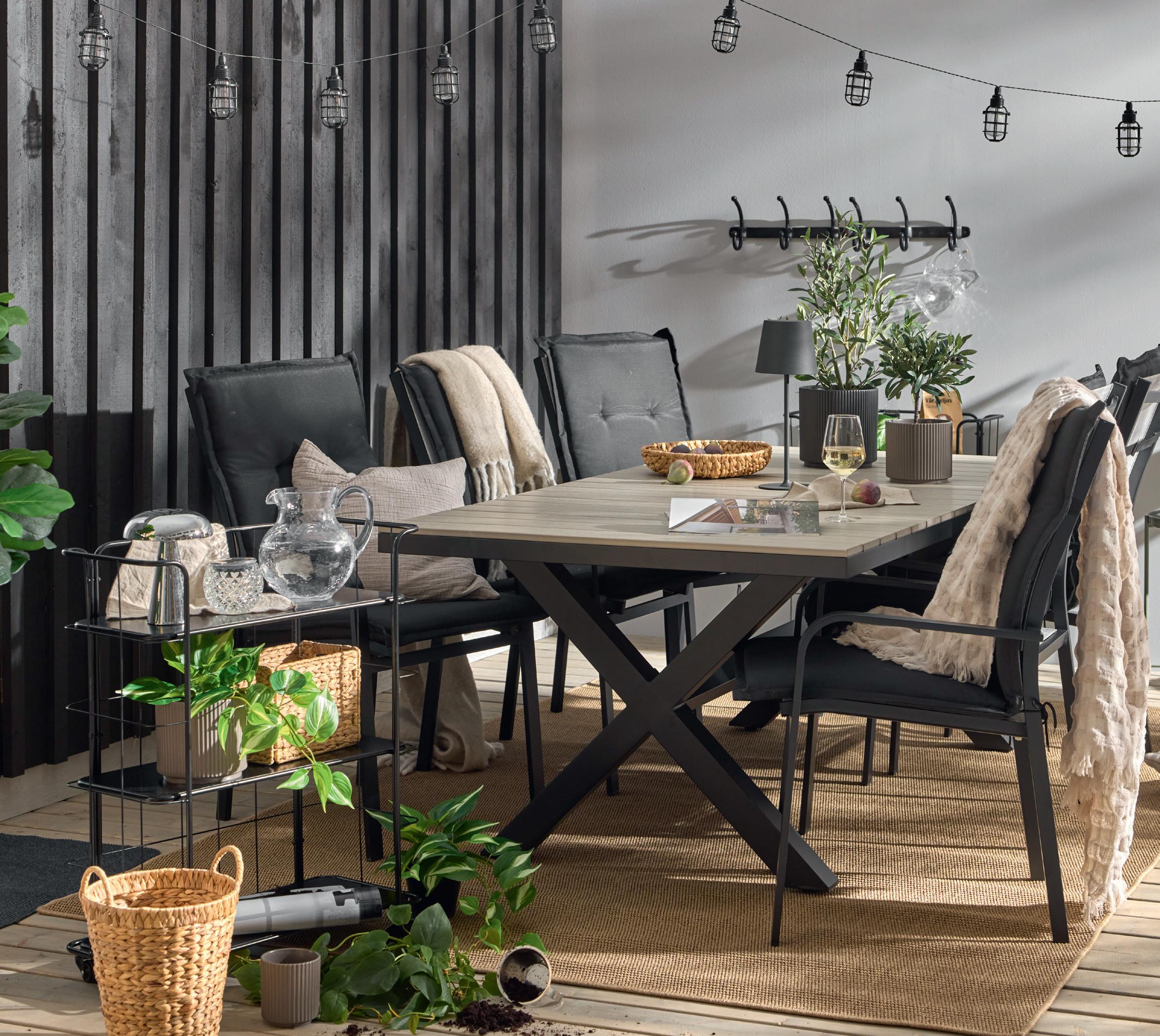 NYHET Utegrupp med soffa och 2 fåtöljer Maxime 9.995· (11.995·) NYHET Utebord Maxime, 120x70 cm 2.495· Parasoll Luleå 1.995· NYHET Flatvävd matta Eketorp, 200x290 cm 899· NYHET Pläd My, 130x170 cm 399· NYHET Utegolvlampa Luca, H 135 cm 799· (999·) Kuddfodral Curly, 50x50 cm 199· Förvaringskorg Tora, Ø 38, H 44 cm 499·