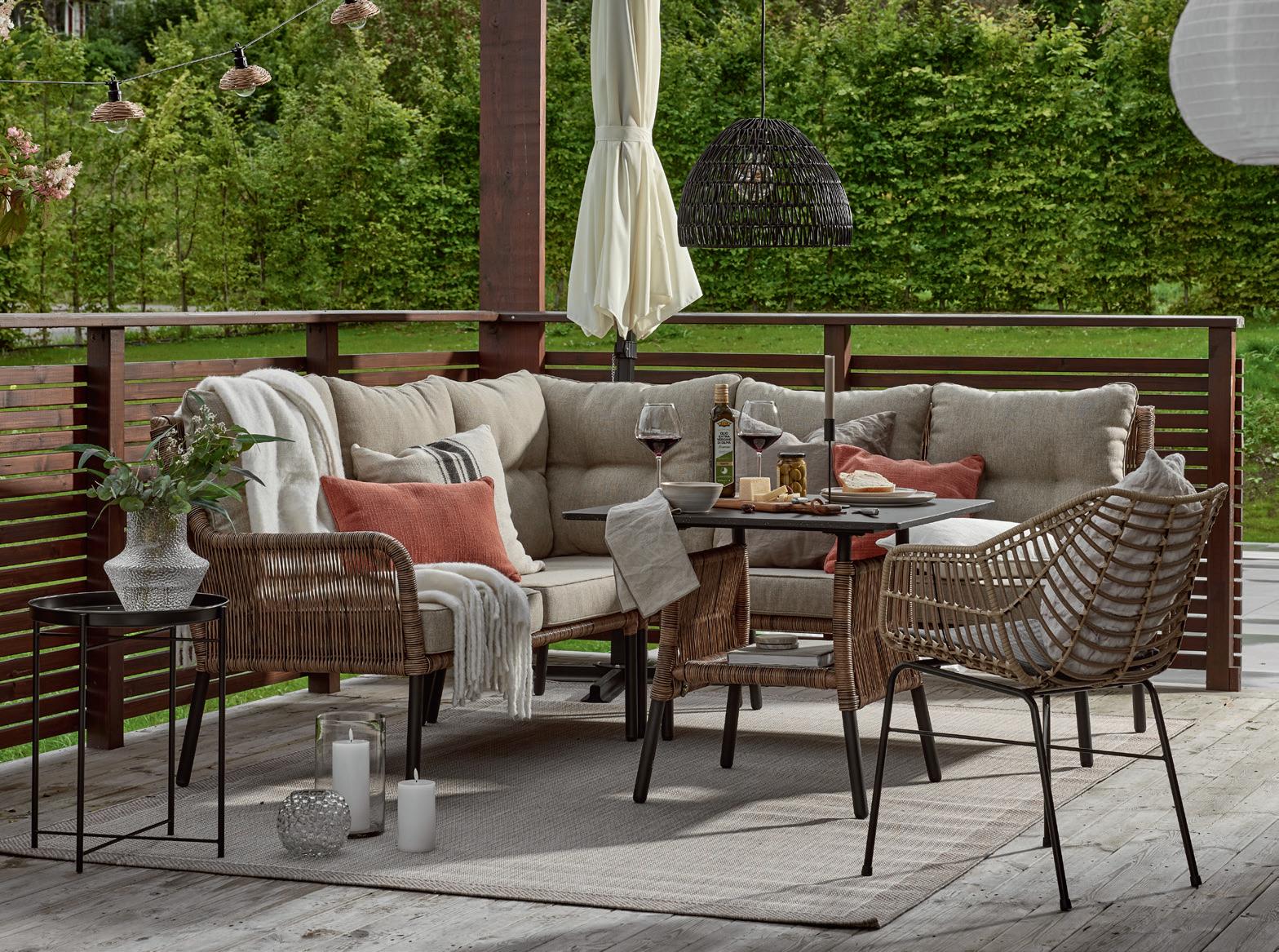 Semesterkänsla med Mallorca Mallorca är en stilfull utegrupp som för tankarna till varma sommarkvällar. Med sin eleganta repflätning, sköna sittkomfort och höga bord passar den för både avkoppling och middag. Den tåliga fibercementskivan klarar väder och vind – med stilen i behåll.