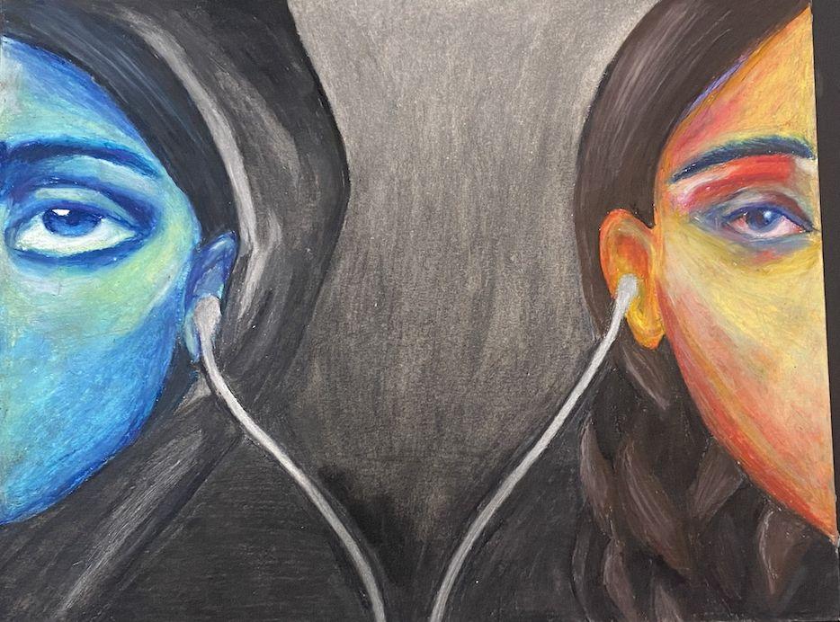 The process o creatin their final artwork be an with brainstormin ideas throu h thumbnailsketchesand,a terselectin thestron estconcept,studentsdecidedonthecolors and mediums theywanted touse.“I thinkoneo themost important stepswasexperimentin with di erent materials,” said A ustina Martinez Ferretti ’25. “It ave me the opportunity to fi ureoutwhatworkedandwhatdidn’tbe orecommittin tothefinalcomposition.”