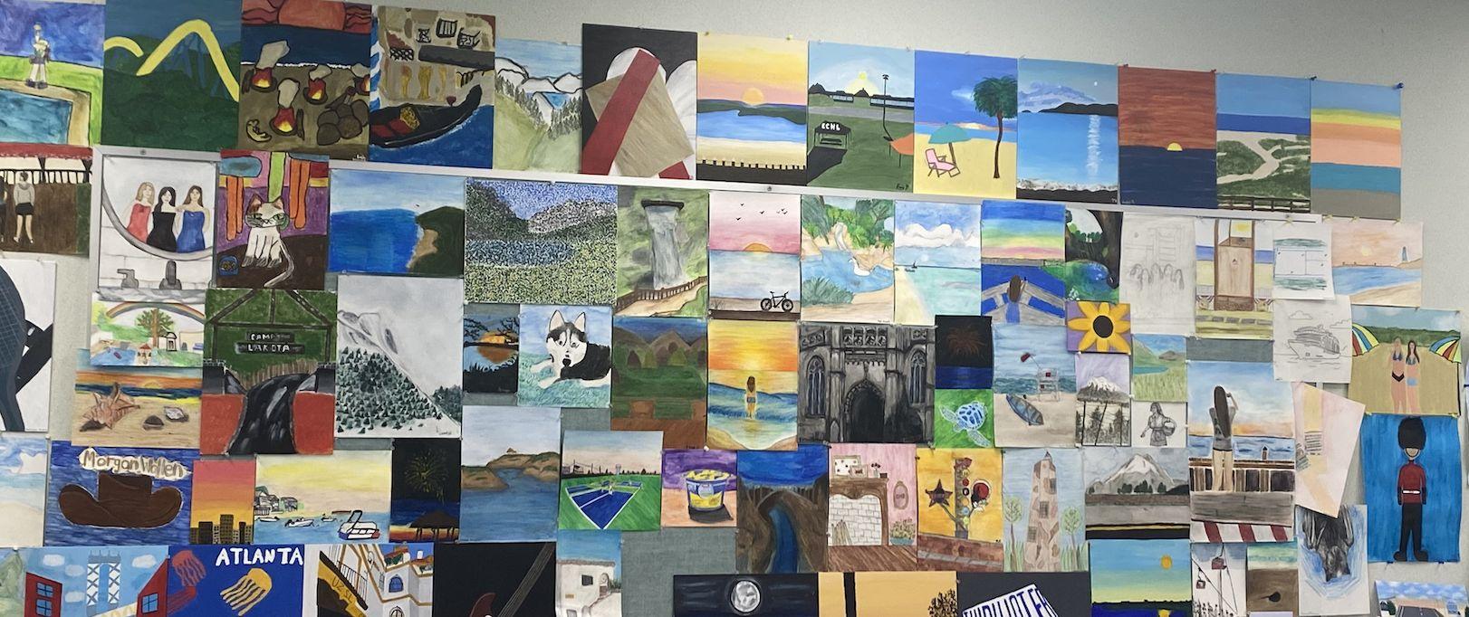 Thissemester,studentsinMrs.La ana’sclasseshavebeenbusycreatin ,reflectin ,and explorin art history. Grades 7-9 kicked o the second hal o this semester with summer-inspired 11x14 acrylic paintin s. Each piece hi hli hted personal summerexperiences, accompanied by an artist statement explainin their inspiration and artistic choices. Students also drew influence rom French Impressionists and Post-Impressionists like Monet, Matisse, andCezanne,inte ratin thesetechniquesintotheirwork.