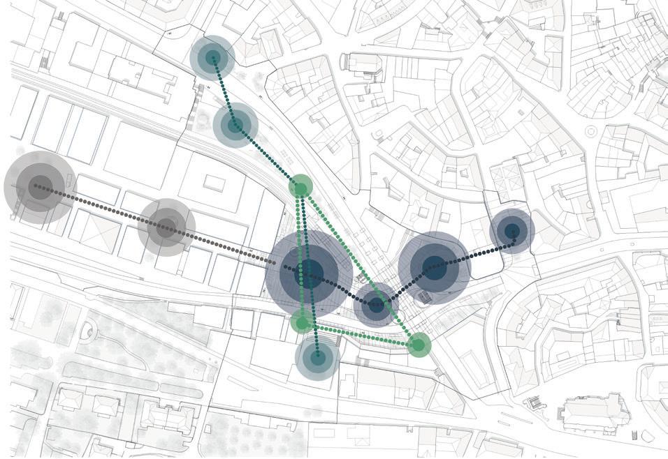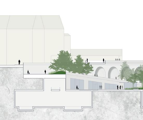 – Comment révéler et vivre la spécificité tridimensionnelle de ce secteur (ville haute, ville basse et ville souterraine) tout en assurant une lisibilité et une perméabilité visuelle et physique entre les différents ni- veaux de la ville ?