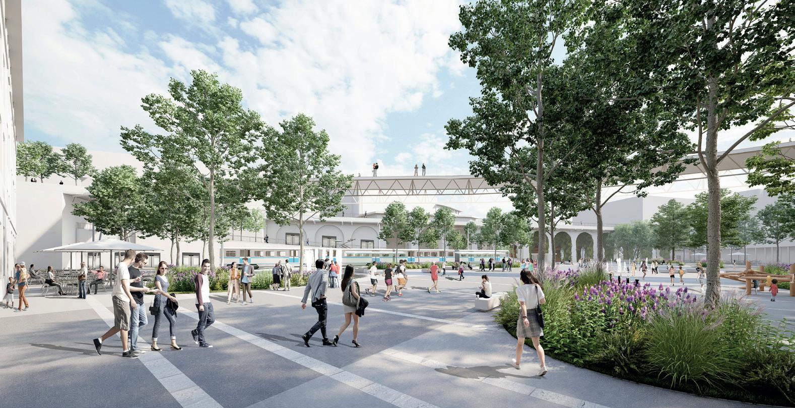 – la complémentarité entre les fonctions d’une interface majeure de transports publics et celles d’un espace public majeur de centre-ville ;
