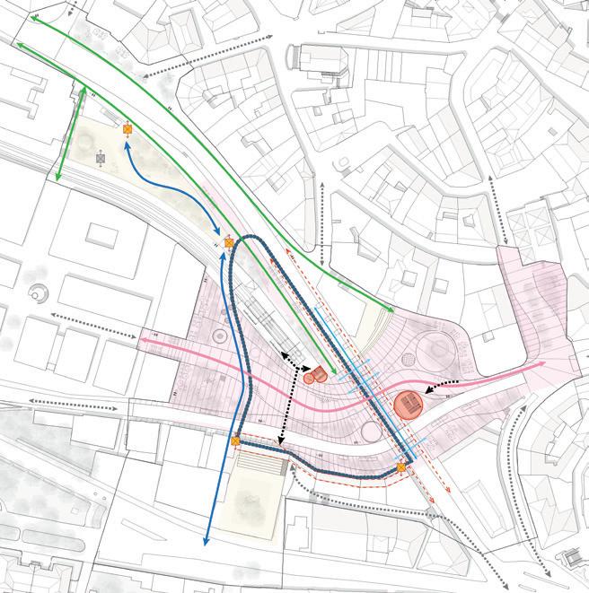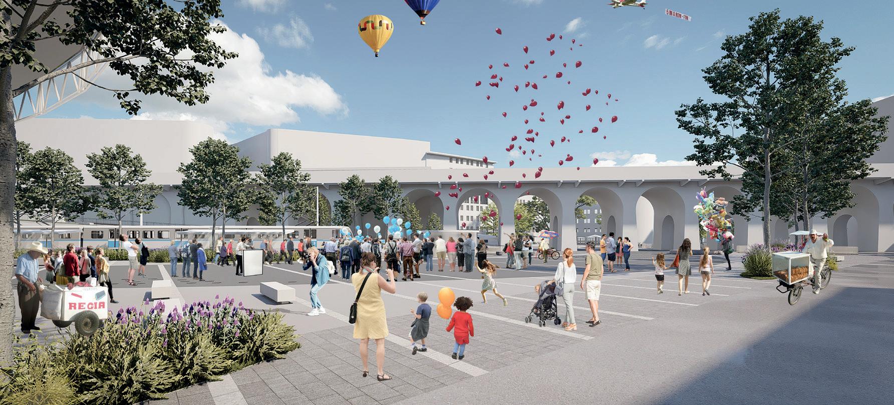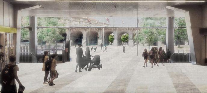 – intégrer de manière optimale la rencontre entre les différentes infrastructures de l’interface multimodale de transports, en créant, d’une part, des conditions de déplacement et d’attente accueillantes et, d’autre part, en libérant de l’espace pour des activités non liées au transport ;