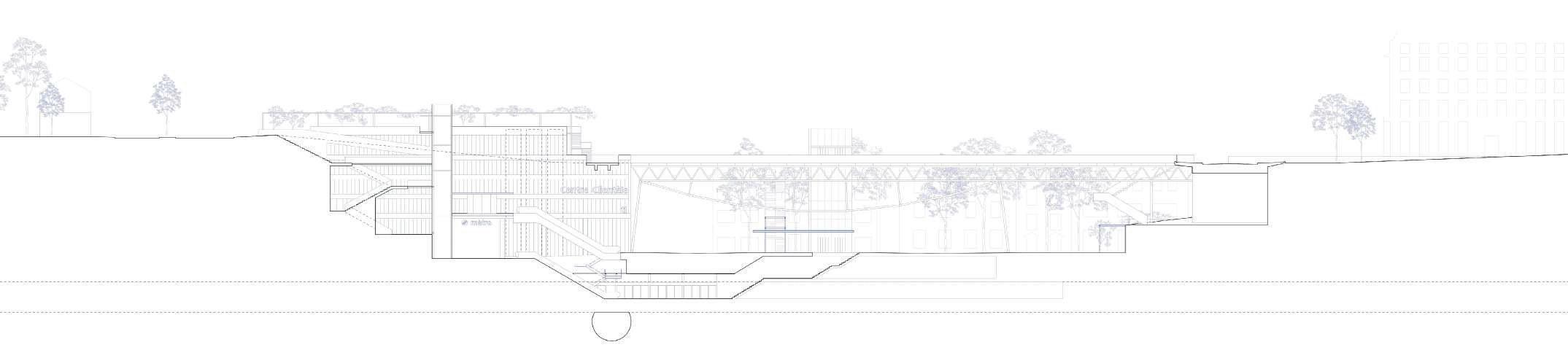 Ensuite, il y a le découpage de plusieurs plateaux horizontaux au niveau de la place, au niveau des trains et un nouveau plateau dénommé mezzanine permettant d’accéder aux différents transports publics.