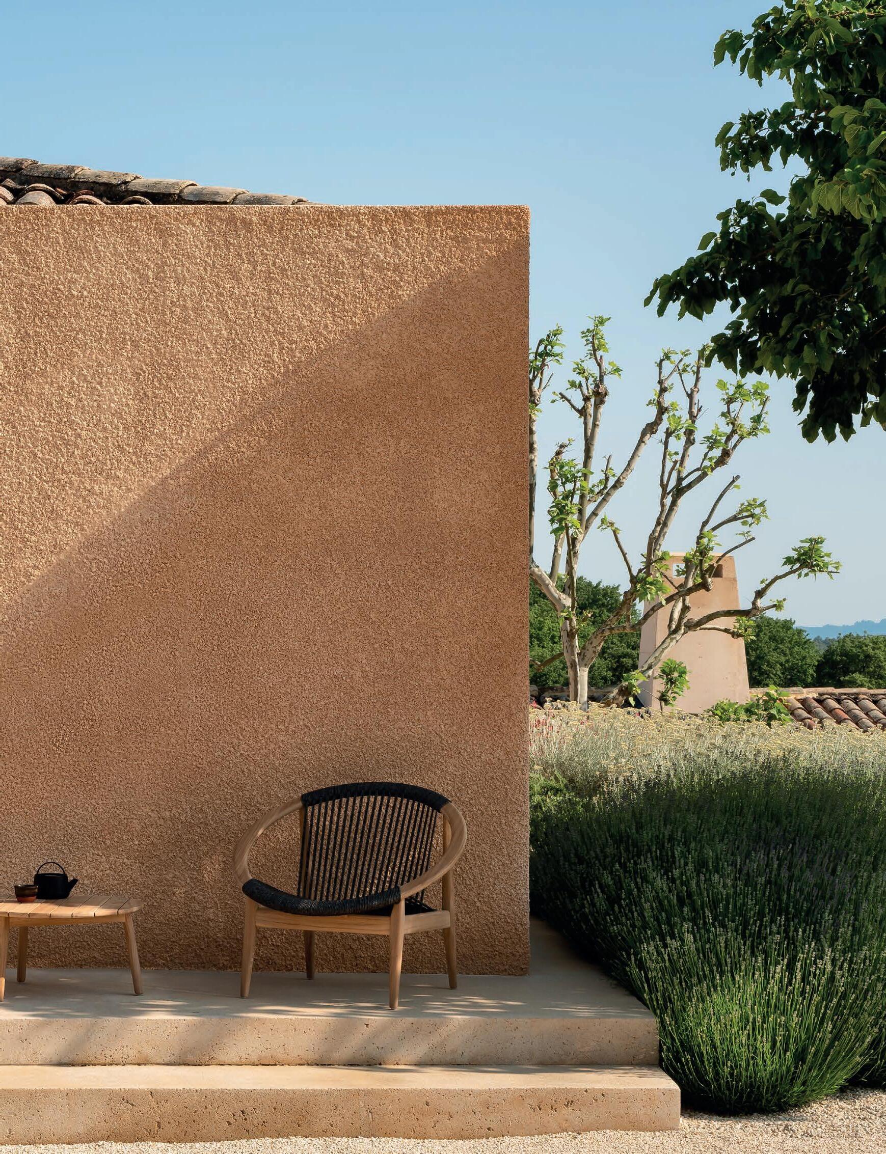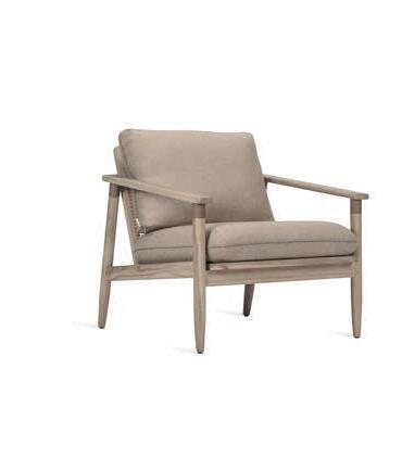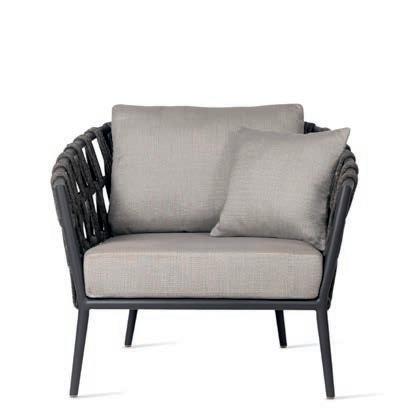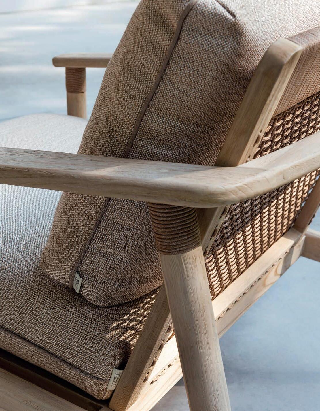 Warm teak, textured straps and pillow-like cushions create an ambiance that is both playful and inviting.