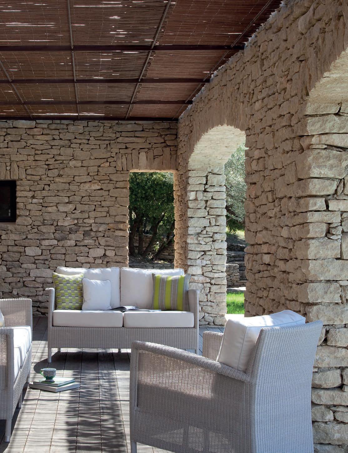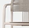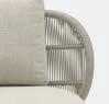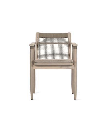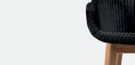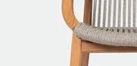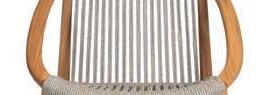 Prominently featured solid teak legs and high woven rope backs give the collection a rich and engaging personality. Designed by Bertrand Lejoly.