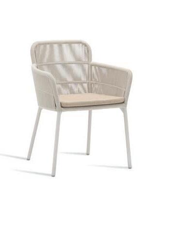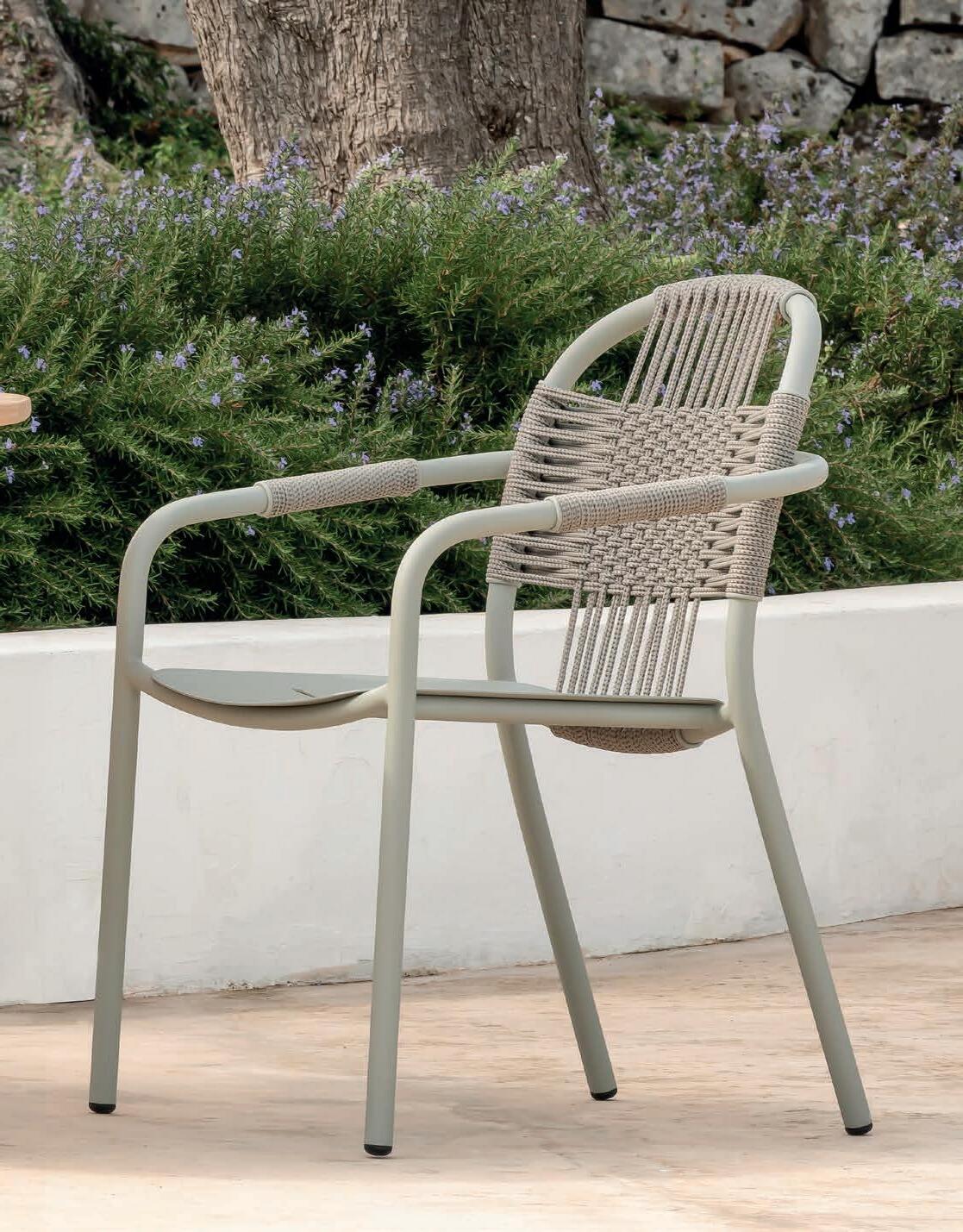 Twisted rope wraps around the frame in a way that complements its gentle curves, creating an airy silhouette.
