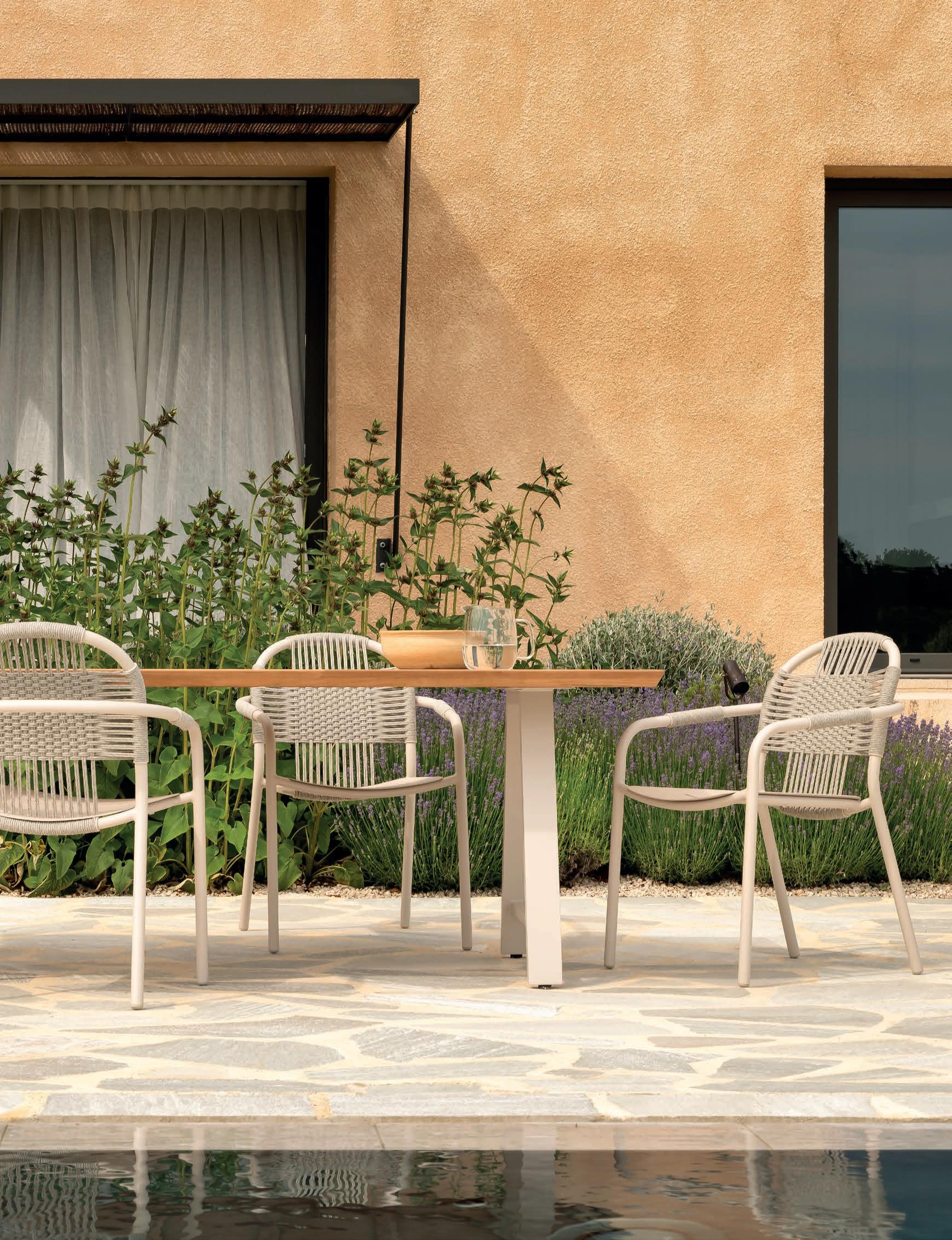 Aluminium is a light-weight material which is mainly used as an alternative for steel. Aluminium has a selfprotective layer, which prevents corrosion and makes this material very suitable for outdoor applications. Our aluminium furniture is powder coated, which enables us to offer a wide variety of colours. On top of that, it is super easy to maintain. A quick wash with a non-foaming mild detergent every now and then is all it needs!