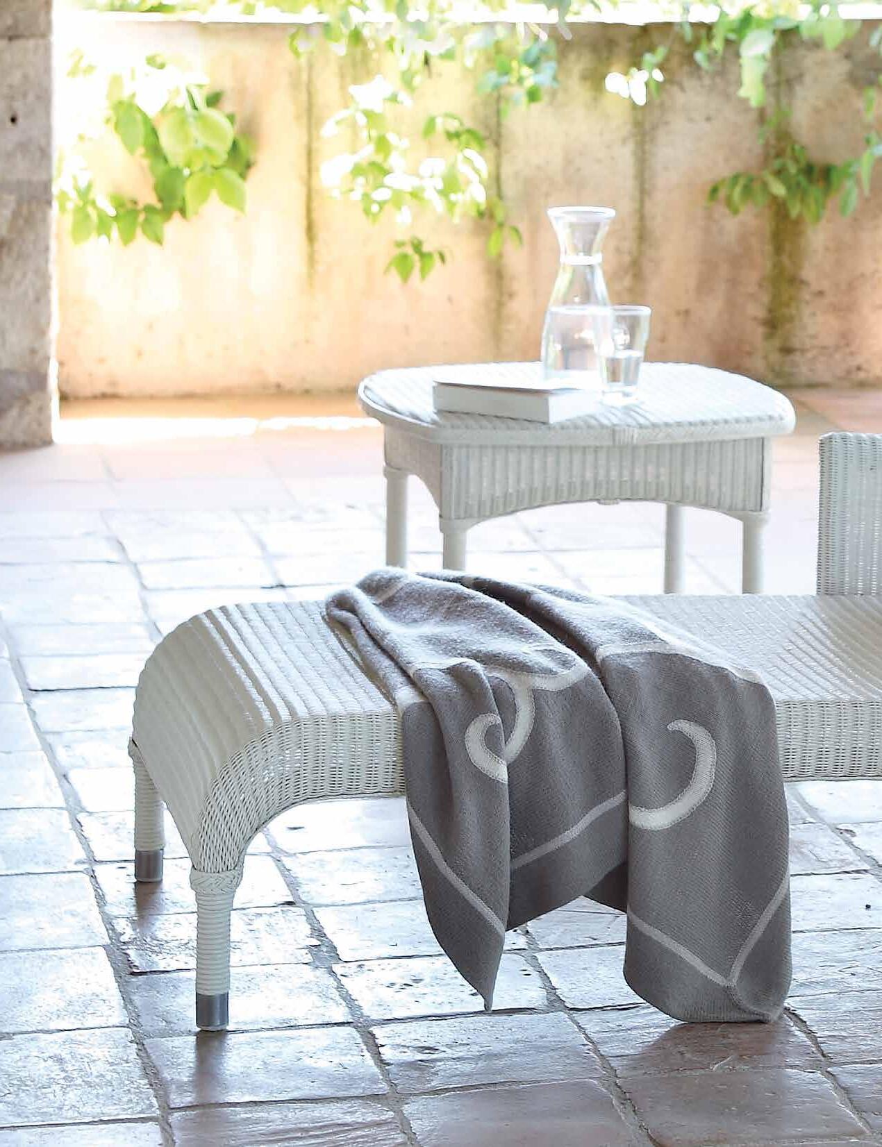 Our legendary outdoor woven paper collection is made of genuine Lloyd Loom, treated for UV and moisture resistance.