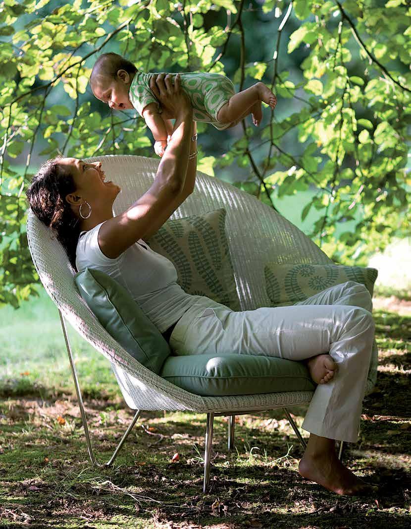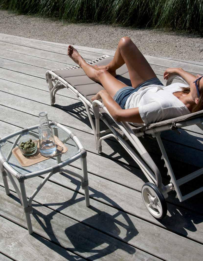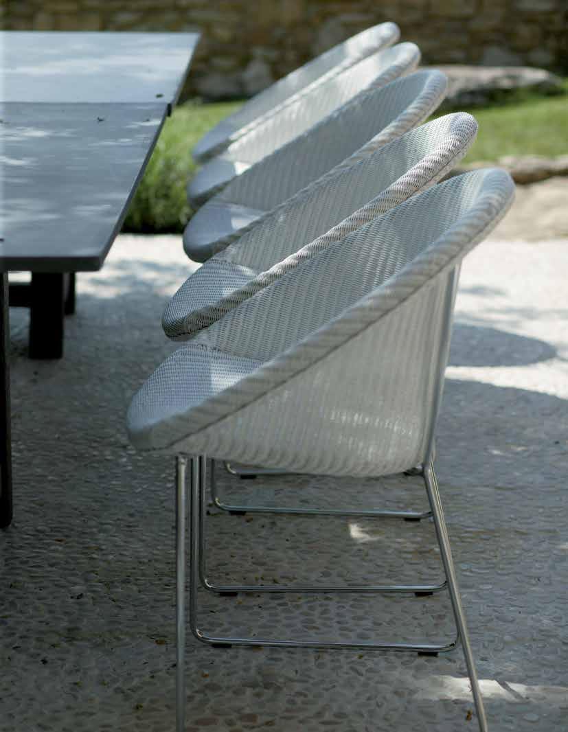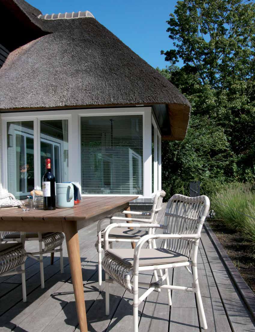 The Vincent Sheppard Outdoor Resin collection is made of polyethy-lene fiber and a powder coated aluminum frame.