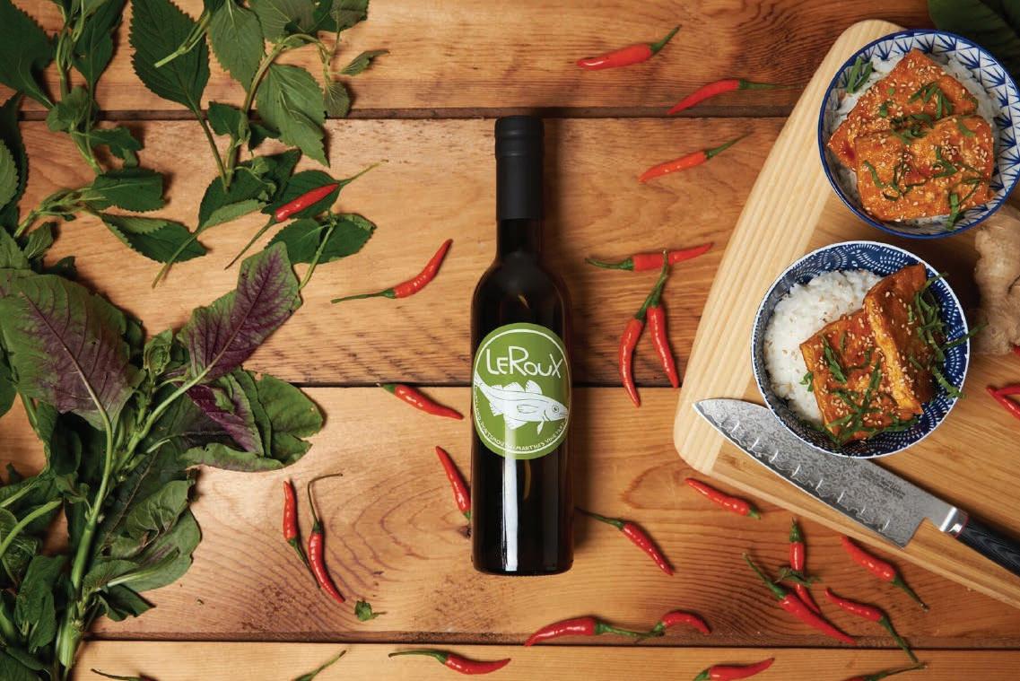 Genie in a bottle. Our latest favorite flavored olive oil from LeRoux at Home’s signature collection is Gochujang olive oil. Try this spicy oil in marinades, dressings, and on grilled pizza, of course! Bottles (200 ml) start at $14.99. Samples are available to taste at the Vineyard Haven store.