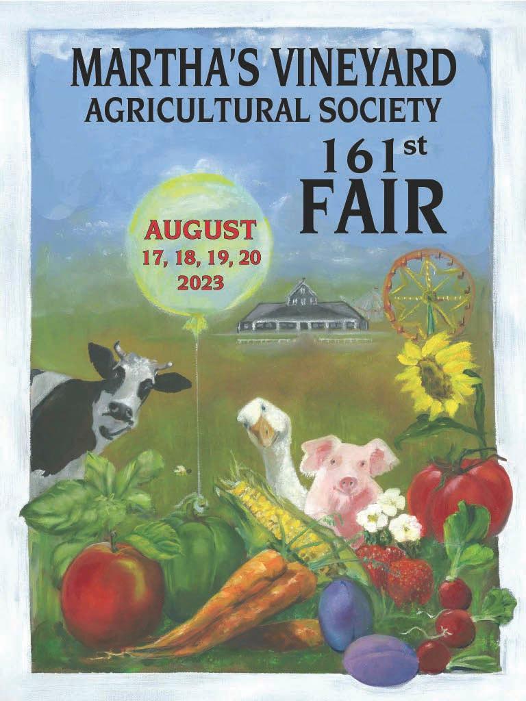 The first fair winner was already picked, however, when Nancy Mulcahy’s design for the annual fair poster was selected from 32 submissions in a competitive process. Nancy is a teacher, artist and seasonal Edgartown resident. The judges cited her winning entry (at left) as having “timeless appeal.”