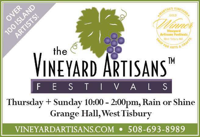 Meet the artists and enjoy demonstrations of fine arts and crafts. Rain or shine, the market is Sundays and Thursdays,10 a.m. to 2 p.m. Grange Hall, 1067 State Road, West Tisbury, vineyardartisans. com.