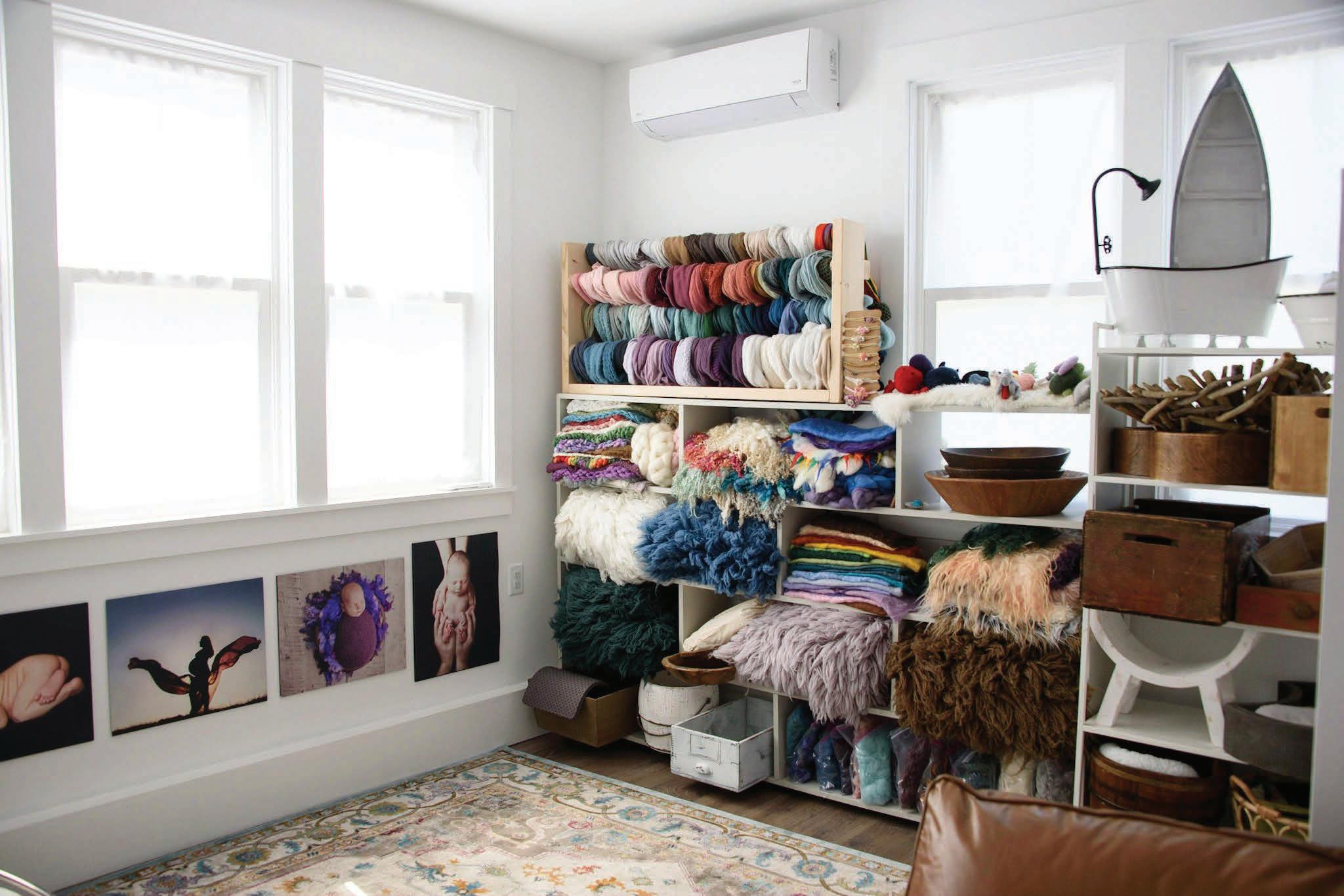 For photographer Maria Thibodeau, having a designated, light-filled studio to photograph babies means not only that she doesn't have to haul her props and handmade crafts around, but also that she has a space that generates a calm and peaceful energy.