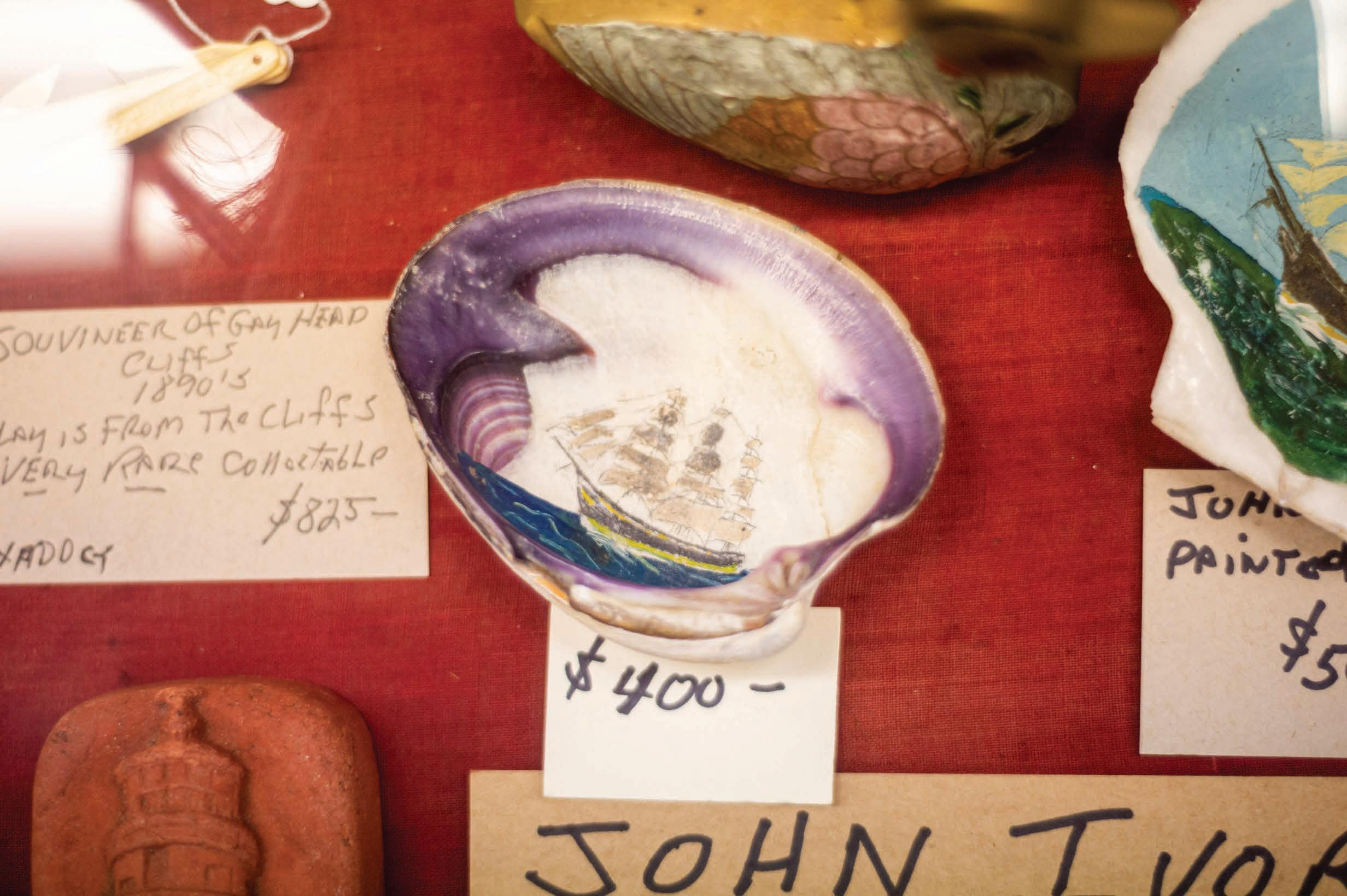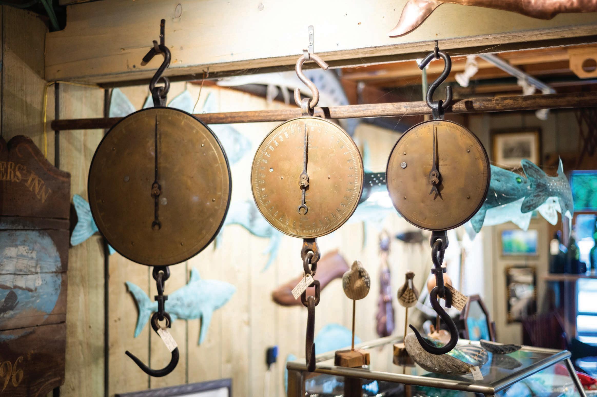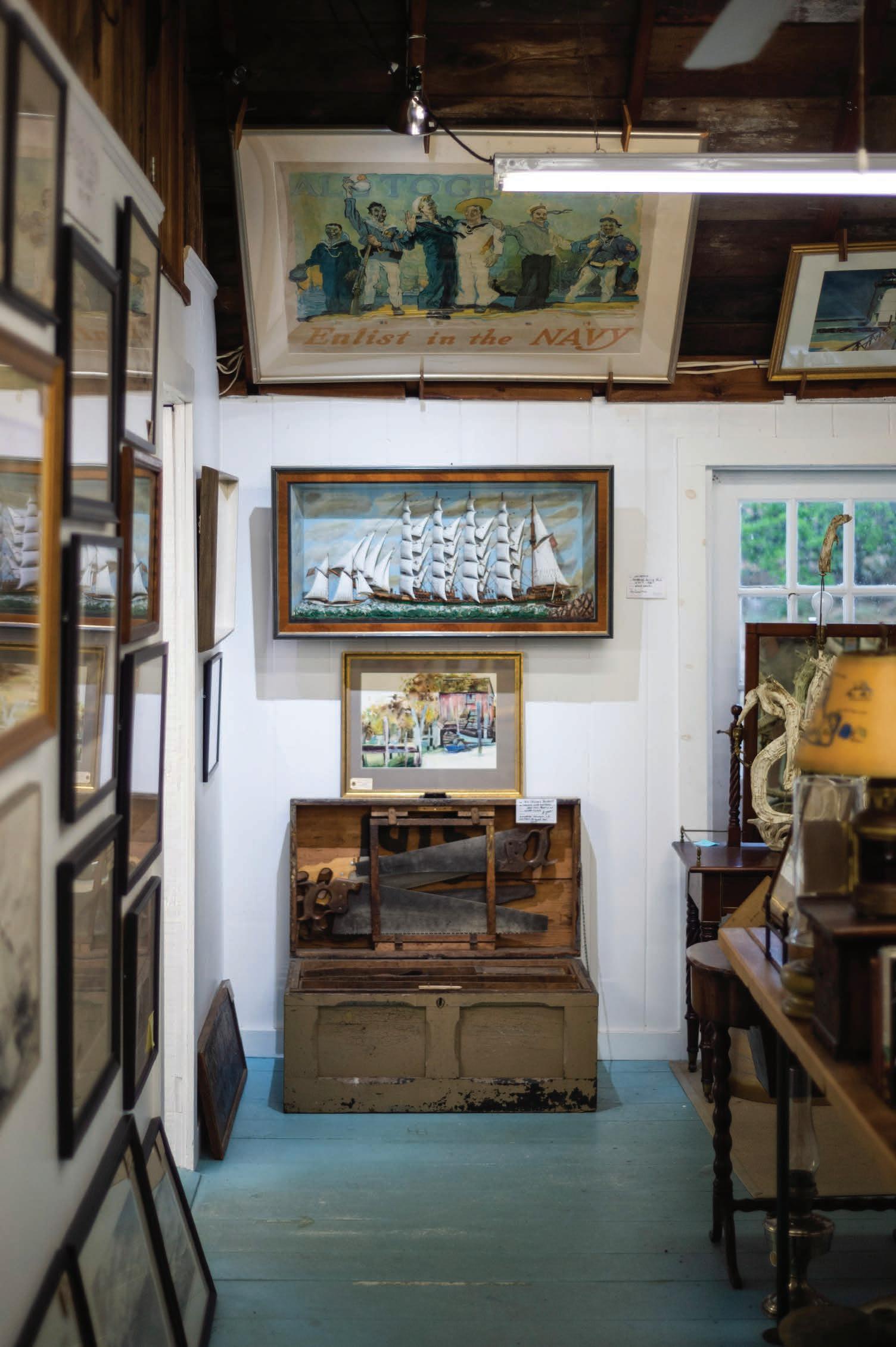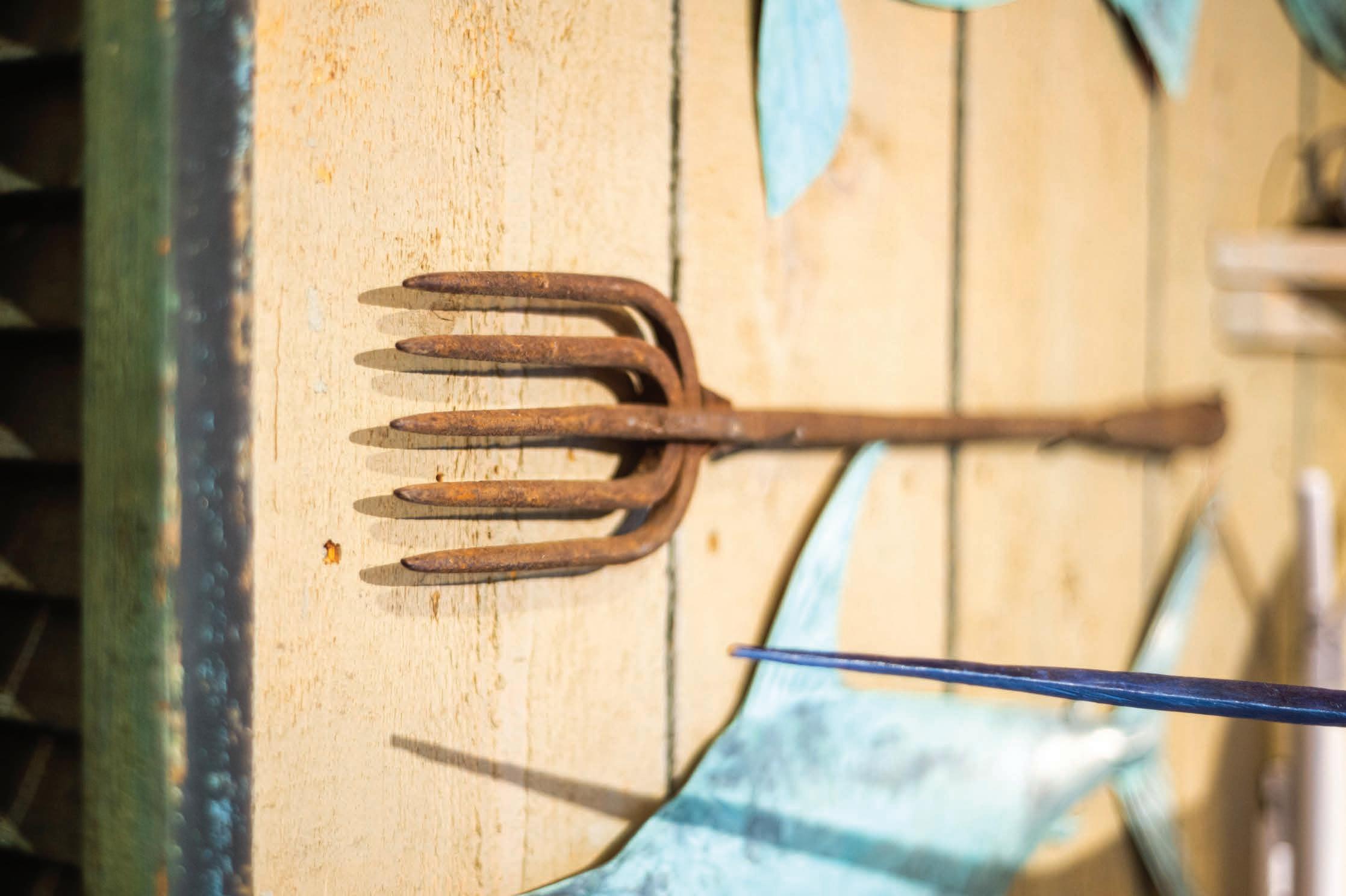 Eel spears, harpoons, fish scales and other antiques reflecting the Island's seafaring histo ry are displayed alongside copper art and weathervanes at The Copperworks of Martha's Vineyard in Menemsha.