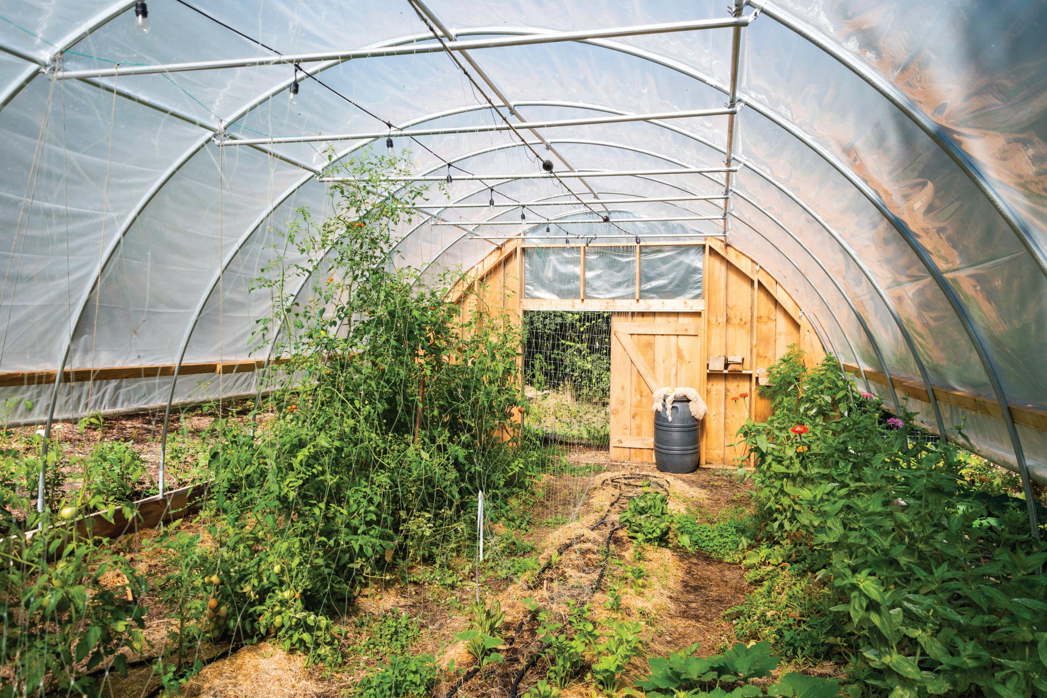 In an effort to be more self-sufficient, Marie Larsen built a small hoop house not far from her large vegetable garden in a spot protected from wind. Like the Ewings, Marie can ventilate her hoop house by rolling up the sides with a sidewall handwall crank.