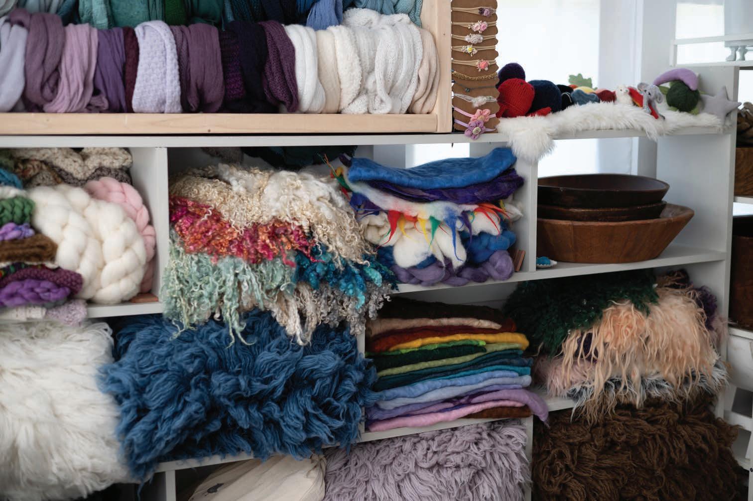 The creation of her own props – including the felted heart in the pho tos above – comes partly out of a DIY aesthetic. “I’ll look at some thing that someone else has done and think, ‘I bet I could make it myself for cheaper.’” But her initial forays into that world held some hard lessons. “When I started, I had no idea how big a pound of wool was; it was an abstract measurement to me. So I would order four pounds of fleece with visions of four pounds of apples in my head, and then a huge tote of wool would show up at the post office!”