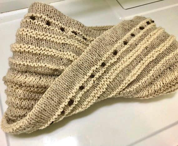 If you’re just setting up your winter space now, you probably didn’t spend much time knitting by the fire last winter. Fear not! Islander Debby Ware of Pasture Prime spends all winter knitting warm, one of a kind woolen accessories.