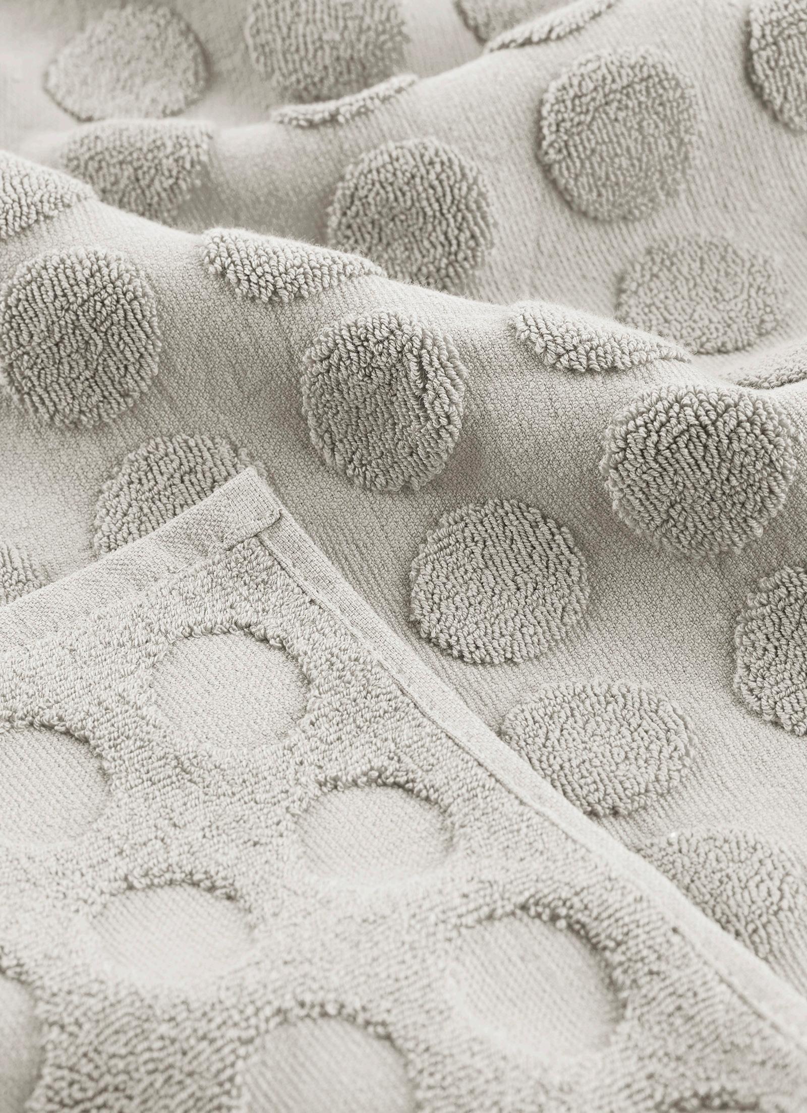 Ved produksjon av et reliefhånkle skapes mønsteret ved at det “skjæres ut” i selve materialet/stoffet. Resultatet blir en diskrè ton-i-ton-effekt på håndklærne, noe som skaper en stilfull og subtil merkning. Reliefhåndklærne produseres i 100% bomullsfrotté og er OEKO-TEX miljømerket.