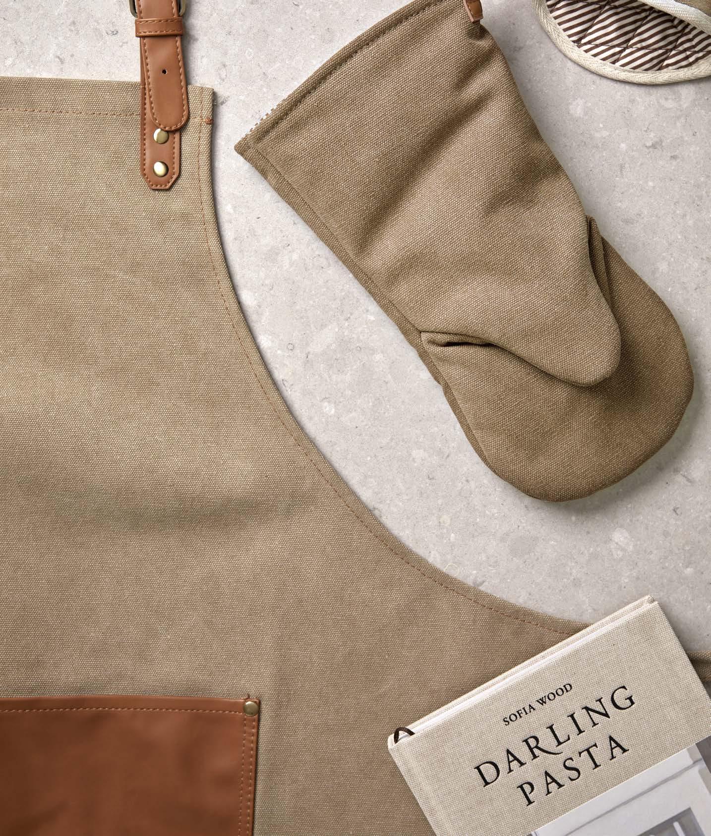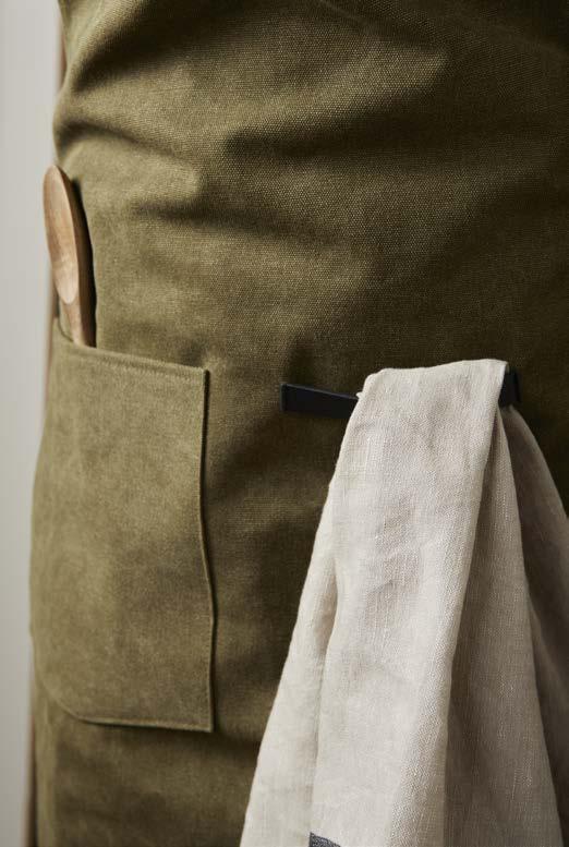 Robust apron in stonewashed canvas 500 gsm with faux leather details. An apron that ages with dignity.